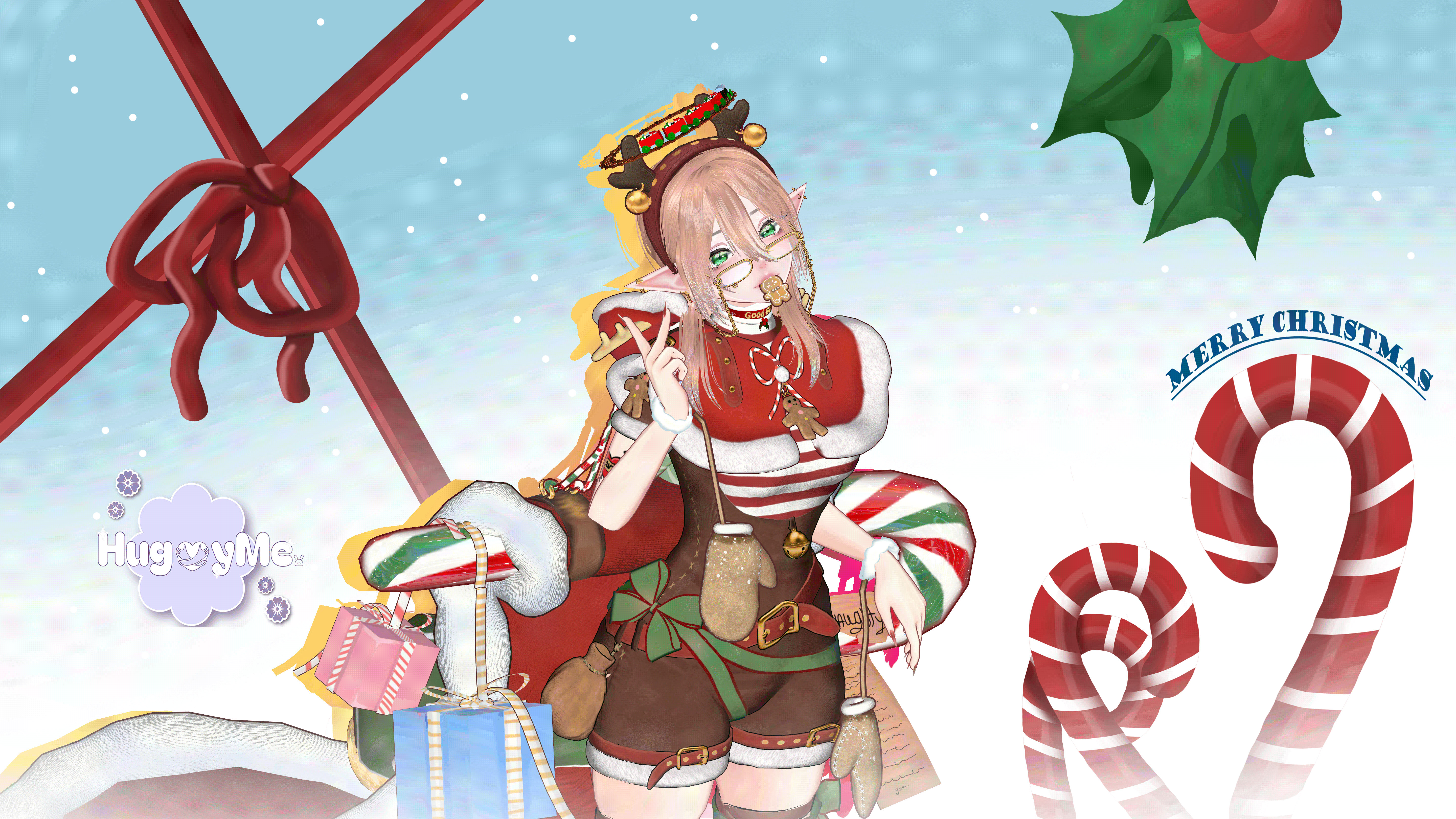 Head// Base// SantaOutfit (Commissioned by hawkon3d) // Loose hair // Braids// Pajamas// Heels// Holly's// Reindeer headband // Mittens// Bernard // Glasses// Bow wraps // Necklace// SPS// GOGOLOCO// Earrings// Candycane//Toy Halo // Christmas tail // Everything else is by me.