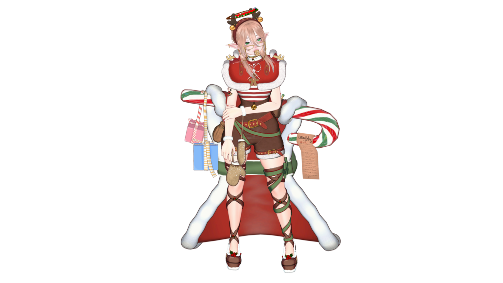 -> Heels-> Glasses -> Reindeer headgear-> Mittens-> Choker -> Bow-Wraps-> Santas' helper bundle -> Pigtails -> Candyman -> Toy halo ->